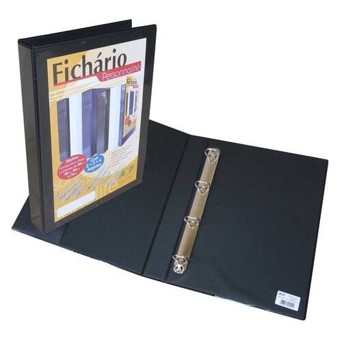 Fichário revestida com cristal ofício preto 40mm - 3340PT - com 4 argolas - ACP