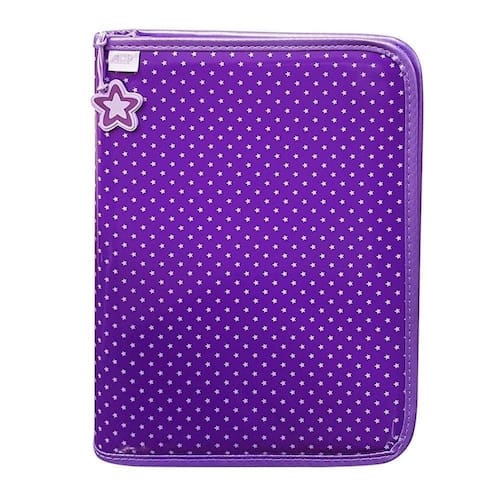 Fichário Universitário ACP 4 Argolas Estrela 19658 Lilás Fichário universitário lilás decorado com estrelas brancas e com miolo que pode ser retirado para que possa ser como uma pasta. -fichário com 4 Argolas e zíper -cor: Lilás estampado com estrelas brancas -composição: PVC laminado e polipropileno -acompanha folhas e divisórias -tamanho: 28,0x37,0x4,0 cm -referência: 19658 Marca: Não Informado Ean: 7897027201090