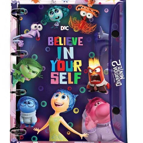 Estudo e diversão combinados! Fichário Universitário Divertidamente Disney PVC Cristal DAC, perfeito para suas anotações.