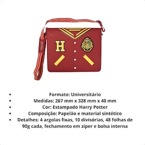 Fichário Universitário com Zíper Harry PotterLeve a magia de Hogwarts para o seu dia a dia O Fichário Universitário com Zíper Harry Potter é perfeito para quem busca praticidade, organização e um toque de encanto nas tarefas da escola, faculdade ou escritório.