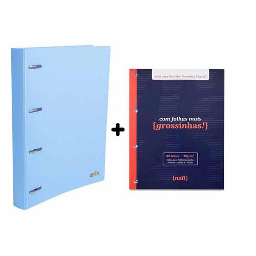 Fichario Universitario Tons Pasteis Azul Com Refil Nali Kit Fichário universitário -Acompanha Refil A4 pautado Nali com folhas mais grossinhas e 1 fichário universitário Dello