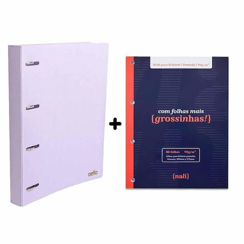 Fichario Universitario Tons Pasteis Lavanda com Refil Nali Kit Fichário universitário -Acompanha Refil A4 pautado Nali com folhas mais grossinhas e 1 fichário universitário Dello