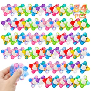 Fidget Spinners Procurando uma maneira divertida de manter as crianças entretidas e aliviar o desconforto ao mesmo tempo? Não procure mais, pois estas 84 peças Fidget Spinners! Perfeito para lembrancinhas de festa em massa, prêmios de sala de aula ou apenas como brinquedos sensoriais para ajudar a aliviar o desconforto e a ansiedade. Estes spinners fidget não são apenas ótimos para crianças, mas também são populares entre adultos que procuram um pouco de alívio do desconforto. Se você está lidando com TDAH ou apenas precisa de algo para mexer, estes spinners são a solução perfeita. Coloque suas mãos nestes spinners fidget coloridos e viciantes hoje e veja-os se tornarem a vida da festa! - Fidget spinners a granel: mantenha a calma e afaste o desconforto com nossos 84 spinners pop fidget de 84 peças! Perfeito para crianças e adultos, estes fidget spinners são os melhores brinquedos sensoriais para aliviar a ansiedade e aumentar o foco. Diga adeus ao desconforto e olá à diversão com estes spinners coloridos! - Lembranças de festa para crianças - Procurando os melhores lembrancinhas de festa ou prêmios de sala de aula? Não procure mais! Nossos spinners pop fidget não são apenas divertidos, mas também proporcionam alívio para pessoas com TDAH. Comece a festa e faça de cada giro uma vitória com estes viciantes fidget spinners! - Brinquedos sensoriais Fidget - Feitos de materiais de alta qualidade, estes spinners fidget são duráveis e duradouros, garantindo infinitas horas de diversão. Leve e portátil, cabe facilmente no seu bolso ou bolsa, o que os torna perfeitos para aliviar o desconforto em movimento onde quer que você esteja! - Enchimento de bolsa de festa - Se você está organizando uma festa, precisa de prêmios na sala de aula ou simplesmente quer aliviar a ansiedade, nossos spinners pop fidget são versáteis e sempre úteis. Mantenha-os em sua bolsa de festa como enchimento ou use-os como uma maneira divertida de promover foco e relaxamento em vários ambientes. - Seguro de usar - A satisfação do cliente é nossa maior prioridade, e é por isso que oferecemos um serviço pós-venda sem complicações. Se você tiver algum problema ou preocupação com seus spinners pop, sinta-se à vontade para entrar em contato conosco e nossa equipe de suporte ao cliente amigável ajudará você imediatamente. Deixe o estourar começar! - Fácil de transportar - os chaveiros Pop Spinners usam design de orifício para pendurar, mais conveniente de carregar. Você pode pendurar a corrente em suas chaves, mochila, estojo de lápis, celular ou até mesmo em cartões de aniversário, cartões de agradecimento, dia dos namorados, Páscoa, cartões de ano novo e cartões de Natal.