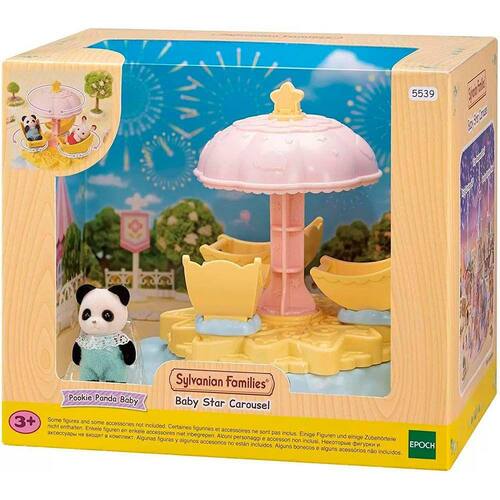 Figura com Acessório - Sylvanian Families - Carrossel - Epoch Magia: O Carrossel Estrela para Bebês tem assentos em forma de lua que giram ao redor ao girar o guarda-sol da estrela. Existem três assentos para as figuras de bebê se sentarem. Este conjunto vem com uma figura de bebê Panda e pode ser tocado sozinho. Combine com a série Baby Amusement Park, Royal Carriage Set, Spooky Surprise House e Baby Costume Series e brinque com as figuras para uma diversão ainda mais divertida no parque de diversões (todos vendidos separadamente). Da uma olhadinha nesses diferenciais: - Nuvens bonitinhas e únicas - Clássicos, divertidos e eficientes meios de brincar - As crianças podem desenvolver seu nível de raciocínio e coordenação motora - Vem com um bebê pandinha muito bonitinho - Carrossel feito com nuvens perfeita para seu bebê pandinha - Assentos em formato de lua - Acompanha somente 01 personagem INFORMAÇÕES: • Produto: Figura Infantil Carrossel Estrela Para Bebês • Marca: Epoch Magia • Coleção: Sylvanian Families • Tipo: Figura com Acessório • Conteúdo: 01 Personagem e 01 carrossel estrela • Recomendação: para crianças a partir de 03 anos de idade ESPECIFICAÇÕES: • Referência: 5539 • Código de Barras: 5054131055397 • Embalagem (C x A x L): 20 x 17 x 14,5 cm • Embalagem (Peso): 0,355 kg • Material / Composição: Plástico Injetado e Tecido • Registro: 004975/2019 • Certificado: Órgãos Autorizados - OCP´S (Organismos de Certificação de Produtos) BENEFÍCIOS DE BRINCAR: • Eleva a autoestima • Exercita a memória • Estimula o raciocínio • Exercita o imaginário • Desenvolve a criatividade • Desenvolve percepção visual • Desperta a atenção e curiosidade • Desenvolvimento neuropsicológico • Estimula habilidades motoras básicas • Incentiva a comunicação e linguagem • Desenvolve aspectos emocionais e afetivo • Estimula o reconhecimento de formas e cores AVISO: • As imagens são meramente ilustrativas • Os pesos, tamanhos e medidas são aproximados • As cores e estampas dos produtos podem ter variações • As informações são de responsabilidade do fabricante ou fornecedor