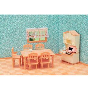 Figura com Acessório - Sylvanian Families - Sala de Jantar - Epoch Magia: O Conjunto Sala de Jantar Clássica inclui uma mesa de jantar e cadeira de bebê adequada para até 5 personagens e um armário de cozinha adorável para armazenar utensílios de cozinha. O Conjunto Sala de Jantar Clássica apresenta um conjunto de chá e torradeira que pode ser armazenado no armário da cozinha. A mesa de jantar vem com 4 cadeiras, que servem para adultos e crianças, e uma cadeira de bebê. Usando o design unificado, combine O Conjunto Sala de Jantar Clássica e outros personagens para criar uma cena brilhante de sala de jantar (vendida separadamente). Da uma olhadinha nesses diferenciais: - Ambiente muito aconchegante e familiar - Clássicos, divertidos e eficientes meios de brincar - As crianças podem desenvolver seu nível de raciocínio e coordenação motora - Mais de 15 peças para completar a brincadeira - Uma parte essencial para sua casinha de brinquedo - Não acompanham personagens INFORMAÇÕES: • Produto: Cenário Conjunto Sala de Jantar Clássico • Marca: Epoch Magia • Coleção: Sylvanian Families • Tipo: Móveis de brinquedo • Conteúdo: 01 mesa, 01 armário, 04 cadeiras e acessórios • Recomendação: para crianças a partir de 03 anos de idade ESPECIFICAÇÕES: • Referência: 5340 • Código de Barras: 5054131053409 • Embalagem (C x A x L): 20 x 17 x 06 cm • Embalagem (Peso): 0,222 kg • Material / Composição: Plástico Injetado e Tecido • Registro: 004975/2019 • Certificado: Órgãos Autorizados - OCP´S (Organismos de Certificação de Produtos) BENEFÍCIOS DE BRINCAR: • Eleva a autoestima • Exercita a memória • Estimula o raciocínio • Exercita o imaginário • Desenvolve a criatividade • Desenvolve percepção visual • Desperta a atenção e curiosidade • Desenvolvimento neuropsicológico • Estimula habilidades motoras básicas • Incentiva a comunicação e linguagem • Desenvolve aspectos emocionais e afetivo • Estimula o reconhecimento de formas e cores AVISO: • As imagens são meramente ilustrativas • Os pesos, tamanhos e medidas são aproximados • As cores e estampas dos produtos podem ter variações • As informações são de responsabilidade do fabricante ou fornecedor
