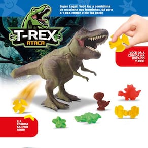 Figura com Massa de Modelar - Dinossauro - T-Rex Ataca - Divertoys: prepare-se para viver uma aventura em um mundo onde os dinossauros habitavam, uma época onde o predador mais forte sobrevivia. O Dinossauro de brinquedo T-Rex Ataca é incrível e estimula brincadeiras pré-históricas. Ele vem acompanhado de 5 forminhas de dino e 4 potinhos de massinha (verde, vermelho, amarelo e marrom). Cada potinho tem 50 g de massinha de modelar Diver Massa. Você faz a comidinha de massinha nas forminhas, dá para o T-REX comer e ele faz caquinha. Curta e brinque com esse feroz animal da era mesozóica! Detalhes: • Detalhes autênticos e realistas • Inspirado em um dinossauro de verdade • Com movimentos articulados na cabeça e patas... para poses mais realistas • Acompanhado de 5 forminhas de dinossauro • 4 potinhos de massinha (verde, vermelho, amarelo e marrom) • Cada potinho de Diver Massa tem 50 g de massinha de modelar • Você faz a comidinha de massinha nas forminhas • Dê a comidinha para o T-REX comer e ele faz caquinha Informações: • Produto: Figura de Vinil T-Rex com Diver Massa de Modelar • Marca: Divertoys • Coleção: Dinossauro Diver Dinos • Tipo: Conjunto de Figura com Massinha de Modelar • Categoria: Figuras de Animais e Pets • Tamanho (C x A x L): 35 x 30 x 14 cm • Conteúdo: (1) Figura de dinossauro (5) Forminhas de dino (4) Potinhos de massinha (verde, vermelho, amarelo e marrom) • Recomendação: para crianças a partir de 03 anos de idade Especificações: • Referência: 8170 • Código de Barras: 7898639381705 • Embalagem (C x A x L): 47.5 x 33 x 23 cm • Embalagem (Peso): 1.420 kg • Composição / Material: Vinil, Plástico e Massinha de Modelar • Registro: CE-BRI/APTA-N00004-20 • Certificado: Órgãos Autorizados - OCP´S (Organismos de Certificação de Produtos) Benefícios de brincar: • Eleva a autoestima • Exercita a memória • Estimula o raciocínio • Exercita o imaginário • Desenvolve a criatividade • Desenvolve percepção visual • Desperta a atenção e curiosidade • Desenvolvimento neuropsicológico • Estimula habilidades motoras básicas • Incentiva a comunicação e linguagem • Desenvolve aspectos emocionais e afetivo • Estimula o reconhecimento de formas e cores Aviso: • As imagens são meramente ilustrativas • Os pesos, tamanhos e medidas são aproximados • As cores e estampas dos produtos podem ter variações • As informações são de responsabilidade do fabricante ou forne