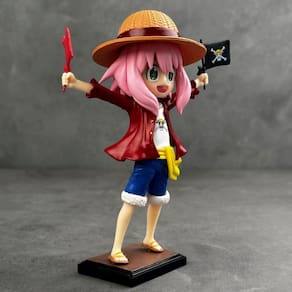 Material: PVC Cor: multicolorido Tamanho da embalagem: 15 x 10 x 20 cm Peso da embalagem: 0,15 kg Lista de embalagem: 1 x Anya Forger Luffy Costume Action Figuer Design adorável de Anya Forger: Esta figura de ação apresenta Anya Forger da Spy x Family vestida com uma fantasia de Luffy, segurando bandeiras piratas. A figura captura sua expressão divertida e alegre e seu icônico cabelo rosa. ', “Construção em PVC de alta qualidade: feita de material de PVC durável, esta figura foi projetada para uma exibição duradoura. As cores vibrantes e a escultura detalhada da roupa e das bandeiras de Anya destacam o charme da personagem. “, 'Tamanho perfeito para exibição: com 18 cm, esta figura é ideal para exibição em qualquer coleção de anime ou mangá. A base robusta garante que ela fique segura em prateleiras, mesas ou vitrines sem tombar. ', 'Ótimo presente para fãs de anime: se você é fã de Spy x Family, One Piece ou anime em geral, essa figura é um presente fantástico. É perfeito para aniversários, feriados ou como item colecionável para qualquer amante de anime. ', 'Item de colecionador: esta figura de Anya Forger é indispensável para colecionadores. O artesanato de alta qualidade e o design exclusivo do figurino de Luffy fazem dele uma peça de destaque para qualquer fã de Spy x Family ou One Piece. ']