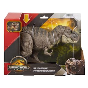 Esta figura de ação do dinossauro Tyrannosaurus rex Lab Lockdown traz a emoção de Jurassic Rebirth para casa com um design inspirado no filme. Um botão ativado permite um ataque de mordida para recriar cenas dramáticas do filme, além de estimular a brincadeira criativa. As articulações móveis deste T. rex de 46 cm tornam-no pronto para brincadeiras e exibição.