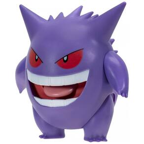 Marca: Pokémon Fabricante: Jazwares Modelo: 95126 Tipo de produto: Figura de ação articulada colecionável Personagem: Gengar, Pokémon do tipo Sombrio Linha: Battle Feature Figure Altura aproximada da figura: 11 cm Material predominante: Plástico Cor predominante: Roxo com detalhes em tons claros e escuros Articulações: Múltiplos pontos de articulação para poses de exibição e brincadeira Recurso de ação: Mecanismo de ataque com língua extensível acionado por movimento da figura Alimentação: Não requer baterias Faixa etária recomendada: A partir de 4 anos Categoria: Brinquedo de figuras e playsets, figura de ação infantil e colecionável Uso indicado: Brincadeiras temáticas, simulação de batalhas e composição de coleções Pokémon Conteúdo da embalagem: 1 figura de ação Gengar Battle Feature Aviso de segurança: Contém peças pequenas, não indicado para crianças menores de 3 anos Marca: Não Informado