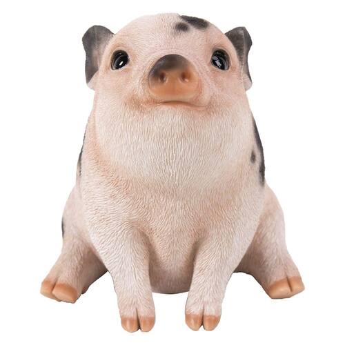 Hi-Line Gift 87685-A Cerdito regordete sentado en color rosa con manchas negras. - Hermosamente pintado con detalles realistas - Composición: Poliresina - Uso interior y exterior - Número de modelo: 87685-A