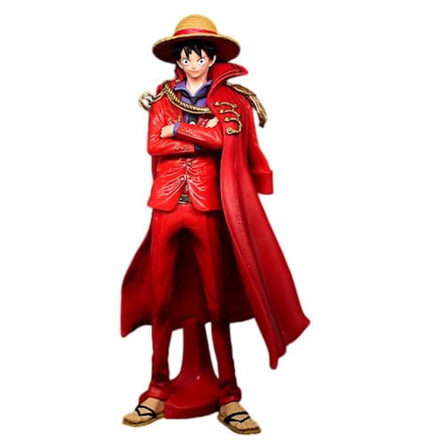 Material: PVC Cor: colorido Tamanho da embalagem: 28 x 18 x 14 cm Peso da embalagem: 0,33 kg Lista de embalagem: 1 x boneco Luffy Red Coat Design icônico de Luffy: esta figura captura Luffy de One Piece em sua icônica roupa vermelha, com um elegante casaco vermelho e seu chapéu de palha exclusivo. É uma representação dinâmica do amado pirata. ', 'Material de PVC premium: feito de PVC de alta qualidade, esse boneco garante durabilidade e atenção aos detalhes, tornando-o uma adição fantástica a qualquer coleção One Piece que dure anos. ', 'Peça de exibição perfeita: com 26 cm de altura, esta figura de Luffy é perfeita para exibir em mesas, prateleiras ou vitrines. Suas cores vibrantes e sua pose confiante iluminarão qualquer ambiente ou coleção. ', 'Artesanato detalhado: A figura mostra detalhes intrincados no traje de Luffy, incluindo os botões dourados e as dobras de seu casaco vermelho, destacando o artesanato e o realismo do modelo. ', 'Ótimo presente para fãs: este boneco Luffy é um presente ideal para fãs de One Piece ou colecionadores de anime, tornando-o perfeito para ocasiões especiais, como aniversários ou feriados. Ele vem embalado com segurança para presentear. ']