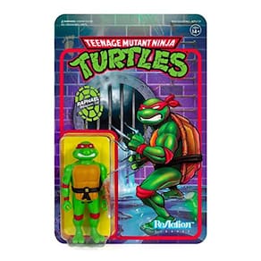 Do Super 7. Cowabunga! Uma explosão do passado vem com os estilos da década de 1980 das Teenage Mutant Ninja Turtles ReAction Figures! Essas figuras de ação de plástico são estilizadas para se parecerem com brinquedos clássicos de décadas passadas com detalhes coloridos que lembram as figuras que você pode ter tido quando criança, ou sempre quis! Cada figura em escala de 3,75" vem com acessórios, em um verso de cartão com arte nova.