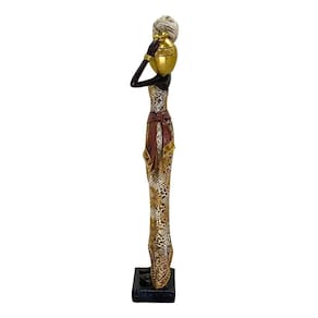 - Dimensões ideais para destaque em prateleiras e aparadores - Acabamento em cores sóbrias com detalhes dourados que valorizam a peça - Material resistente, garantindo durabilidade e fácil manutenção - Representação autêntica da cultura africana, para uma decoração cheia de significado - Design elegante que harmoniza com estilos variados, do clássico ao contemporâneo