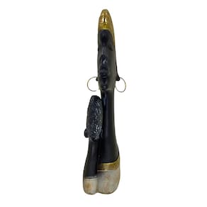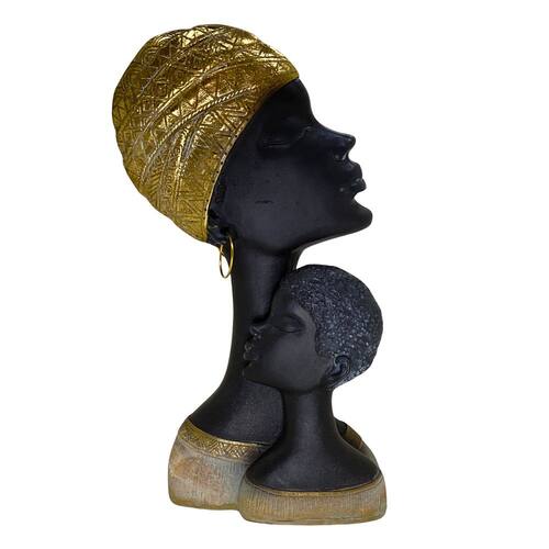 Transforme seu ambiente com a elegância e o simbolismo únicos desta estatueta decorativa que representa a beleza da cultura africana. Com design sofisticado, apresenta duas cabeças femininas, uma adulta e uma criança, evidenciando o vínculo e a força da ancestralidade. Seu acabamento em preto fosco combinado com detalhes dourados realça a riqueza dos traços e transmite uma sensação de nobreza e respeito às raízes.