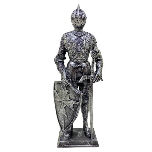 Objeto decorativo cavalheiro com escudo, feita em resina com design clássico e sofisticado perfeito para diversos tipos de ambientes.