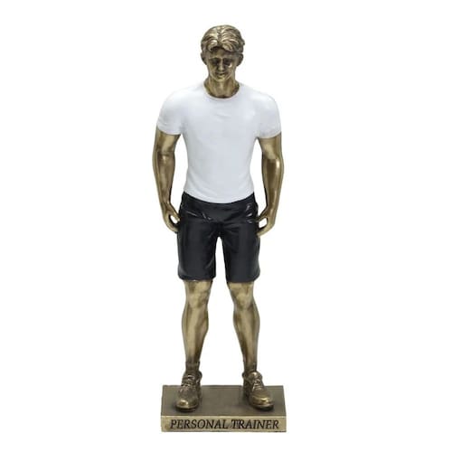 Figura decorativa representando um Homem personal trainer, feita em resina com design clássico e sofisticado perfeito para diversos tipos de ambientes.