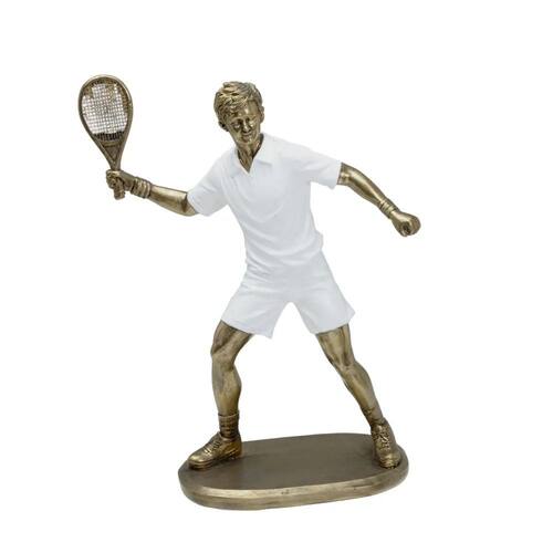 Figura decorativa representando um Homem tenista, feita em resina com design clássico e sofisticado perfeito para diversos tipos de ambientes.