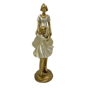 Figura Decorativa Estatueta Mãe e Filha, uma peça que une delicadeza e emoção, perfeita para ambientes que valorizam o afeto familiar. Com dimensões de 23 x 12 x 7 cm, essa escultura traz um design elegante e contemporâneo, com acabamento dourado e prateado que destaca cada detalhe, simbolizando o vínculo especial entre mãe e filha.