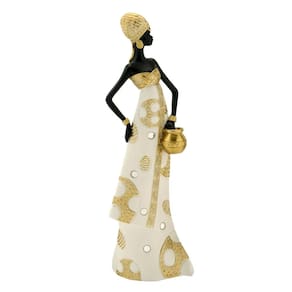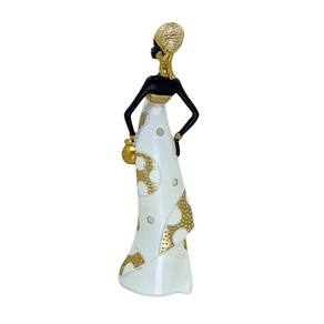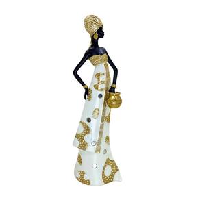 Figura decorativa representando mulher africana, feita em resina com design clássico e sofisticado perfeito para diversos tipos de ambientes.