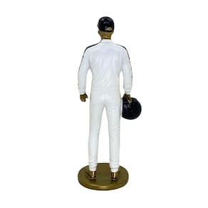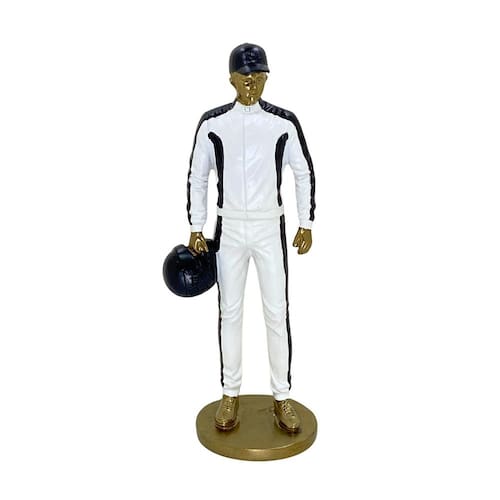 Figura Decorativa Estatueta Piloto Automobilístico 26x8x8 cm: a peça perfeita para apaixonados por automobilismo que buscam estilo e personalidade na decoração. Com acabamento refinado em preto, branco e dourado, esta estatueta traz o charme e a imponência do piloto em postura confiante, segurando seu capacete. Seu design realista e detalhado torna este item um destaque em ambientes como salas, escritórios e espaços temáticos. Produzida com materiais duráveis, oferece resistência e fácil manutenção. Ideal para colecionadores e fãs do automobilismo, essa figura decorativa agrega um toque sofisticado e esportivo ao seu espaço. Aproveite a exclusividade de um produto que inspira velocidade, determinação e paixão.