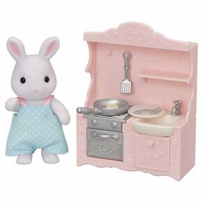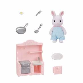 Figura e Conjunto - Sylvanian Families - Cozinha - Pai Coelho Neve - Epoch Magia: Sylvanian Families são adoráveis personagens animais distintos com charmosas e bonitas casas, móveis e acessórios. Eles vivem, trabalham e brincam na idílica e maravilhosa terra de Sylvania. Detalhes: • O conjunto de Cozinha do Papai Coelho de Neve vem com uma cozinha compacta e diversos acessórios de cozinha • Inclui uma cozinha compacta rosa pastel, completa com pia e forno • Este conjunto também vem com pratos e outros acessórios de cozinha e pode ser utilizado sozinho • Apresentando o Papai Coelho de Neve • Figura articulada: os braços, pernas e cabeça da figura podem ser movimentados para colocá-los em diferentes poses • As roupas de tecido podem ser retiradas para troca de roupas Informações: • Produto: Conjunto Cozinha e Papai Coelho Neve • Marca: Epoch Magia • Coleção: Sylvanian Families • Tipo: Figuras com Acessórios • Categoria: Figuras de Animais e Pets • Conteúdo: - 01 Figura Papai Coelho Neve - 01 Cozinha compacta - 01 gaveta que abre e fecha - 01 Frigideira - 01 Espátula - 01 Prato - 01 Garfo - 01 Ovo frito • Recomendação: para crianças a partir de 03 anos de idade Especificações: • Referência: 5678 • Código de Barras: 5054131056783 • Embalagem (C x A x L): 15 x 17 x 07 cm • Embalagem (Peso): 0.151 kg • Material / Composição: Plástico Injetado e Tecido • Registro: 004975/2019 • Certificado: Órgãos Autorizados - OCP´S (Organismos de Certificação de Produtos) Aviso: • As imagens são meramente ilustrativas • Os pesos, tamanhos e medidas são aproximados • As cores e estampas dos produtos podem ter variações • As informações são de responsabilidade do fabricante ou fornecedor