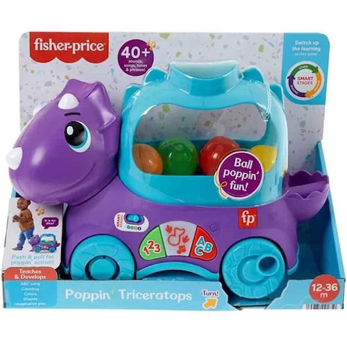 Figura Interativa de Puxar - Dino Bolinhas Divertidas - Fisher-Price: À medida que os pequenos amantes de dinossauros empurram ou puxam o Triceratops, eles observam os ovos coloridos pularem e rolarem para cima e para baixo nas costas do dinossauro. Para uma diversão ainda mais interativa, eles podem pressionar os 3 botões para ativar músicas, sons e frases de aprendizado dos estágios inteligentes que ensinam o alfabeto, números, cores e formas. Use o botão world para selecionar o idioma: espanhol, inglês, italiano ou português. Detalhes: • Explorar, aperte os botõese empurre e puxe o dino para ouvir canções sobre o ABC e as cores. • Estimular, o dino canta música sobre contagem, cores e formas que estimulam o bebê a brincar e andar. • Mais de 40 sons, canções, melodias e frases. Informações: • Produto: Dino Triceratops Bolinhas Divertidas • Marca: Fisher-Price • Coleção: Aprender e Brincar • Tipo: Brinquedo Interativo para Bebês • Categoria: Brinquedos para Bebês • Conteúdo: - 01 Brinquedo Educativo Dino Bolinhas Divertidas • Recomendação: para crianças de 12 à 26 meses de idade Especificações: • Modelo: Dino Bolinhas Divertidas • Referência: HNR49 • Código de Barras: 194735148158 • Embalagem (C x A x L): 35 x 25,5 x 15,5 cm • Embalagem (Peso): 1.200 kg • Alimentação: 3 pilhas AA 1,5V (já inclusas) • Material / Composição: Plástico • Registro: 009998/2022 • Certificado: Órgãos Autorizados - OCP´S (Organismos de Certificação de Produtos) Benefícios de brincar: • Eleva a autoestima • Exercita a memória • Estimula o raciocínio • Exercita o imaginário • Desenvolve a criatividade • Desenvolve percepção visual • Desperta a atenção e curiosidade • Desenvolvimento neuropsicológico • Estimula habilidades motoras básicas • Incentiva a comunicação e linguagem • Desenvolve aspectos emocionais e afetivo • Estimula o reconhecimento de formas e cores Aviso: • As imagens são meramente ilustrativas • Os pesos, tamanhos e medidas são aproximados • As cores e estampas dos produtos podem ter variações • As informações são de responsabilidade do fabricante ou fornecedor