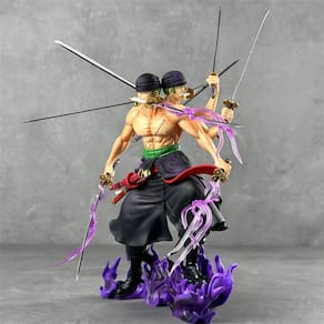 Material: PVC Cor: Multicolorido Tamanho da embalagem: 35 x 20 x 15 cm Peso da embalagem: 0,5 kg Lista de embalagem: 1 x Figura Roronoa Zoro Estilo lendário de três espadas: esta figura apresenta Roronoa Zoro em sua poderosa forma Asura de One Piece. Com três cabeças e seis braços, é uma representação icônica de seu estilo de luta definitivo, capturando a intensidade de suas batalhas. “, 'Artesanato magistral: feito de PVC de alta qualidade, este boneco apresenta detalhes excepcionais, desde a textura de sua roupa até as intrincadas espadas que ele empunha. A base apresenta um efeito de chama dramático, aprimorando o apelo visual geral. ', 'Action Pose with Sword Enma: A postura dinâmica de batalha de Zoro, segurando a lendária espada Enma, é retratada perfeitamente. A figura captura a energia intensa de seu ataque, tornando-a indispensável para qualquer colecionador ou fã de One Piece. ', 'Perfeito para exibição: com 30 cm de altura, este boneco é ideal para exibição em prateleiras ou mesas. A construção durável e as cores vibrantes garantem que ele se destaque como peça central em qualquer coleção de memorabilia de anime. ', “Ótimo presente para fãs de anime: seja para um aniversário, feriado ou ocasião especial, esta figura do Zoro é um presente perfeito para amantes e colecionadores de anime. Representa um momento crucial na jornada de Zoro na saga One Piece.