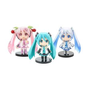 Nome: 3 peças de brinquedo Hatsune Miku Figure Toy Cute Anime Doll Material do modelo: PVC Tamanho: 10 cm Peso: 0,09 kg Função: suprimentos de coleção, ornamentos de vida, embalagem pequena: 3 x Figura
