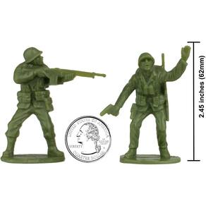 PRODUTO INTERNACIONAL. O Conjunto American Hero Collector Series da BMC Toys apresenta a Batalha de Iwo Jima, com 36 peças de plástico de soldados da Marinha dos Estados Unidos em oliva monótona. Com excelente detalhe e quase nenhum piscante, as figuras têm até 2,45 polegadas de altura e são feitas de plástico rígido e durável