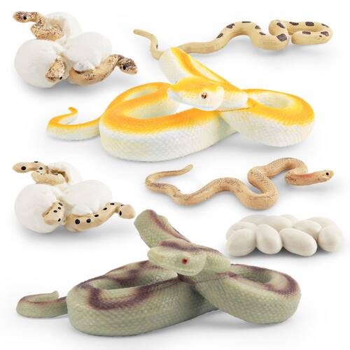 8 peças de bonecos de ciclo de vida de cobra, estatuetas realistas de estágios de crescimento de píton com ovos, filhotes e modelo adulto de píton birmanês, brinquedos educativos para animais e decorações de vida selvagem para crianças de 3 anos ou mais Descrição: Material: PVC Tamanho: 1-14 cm Peso: 298 g Características: 🐍 Conjunto completo de ciclo de vida — Inclui ovos de píton, cobras incubadoras, pítons juvenis e uma cobra adulta enrolada para ensinar crianças sobre o crescimento de répteis encena de forma visual. 🎨 Estatuetas altamente detalhadas — Cada figura é pintada à mão com cores e texturas realistas, tornando-as ideais para colecionadores e educacionais use. 🧠 Valor educacional STEM — Incentiva a curiosidade sobre biologia animal, ciências biológicas e o mundo natural por meio de aprendizado interativo e brincadeiras de contar histórias. 🏡 PVC durável e seguro — Feito de material não tóxico e seguro para crianças, durável e perfeito para atividades em sala de aula, ensino doméstico ou decoração doméstica. 🌿 Decorações multiuso — Ótimas para projetos científicos, exibições com temas de selva, terrários de répteis ou como miniaturas para dioramas e cenas de jogo criativas. O que vem na caixa: 1 x 8 peças de bonecos de ciclo de vida de cobra