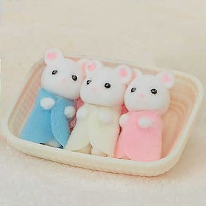 Figuras - Sylvanian Families - Trigêmeos Ratos Marshmallow - Epoch Magia: Sylvanian Families são adoráveis personagens animais distintos com charmosas e bonitas casas, móveis e acessórios. Eles vivem, trabalham e brincam na idílica e maravilhosa terra de Sylvania. Detalhes: • O conjunto Trigêmeos Ratos Marshmallow inclui três figuras adoráveis • Os três cabem juntos dormindo no berço incluso • As figuras possuem articulação na cabeça: mova a cabeça para novas poses • Vestido com roupas de tecido removíveis Informações: • Produto: Figuras Trigêmeos Ratos Marshmallow Sylvanian Families • Marca: Epoch Magia • Coleção: Sylvanian Families • Tipo: Figuras com Acessórios • Categoria: Figuras de Animais e Pets • Tamanho aproximado (C x A x L): 02 x 3.5 x 1.5 cm • Conteúdo: - 03 Figuras Ratos Marshmallow (roupa amarela, azul e rosa) - 01 Berço • Recomendação: para crianças a partir de 03 anos de idade Especificações: • Referência: 5337 • Código de Barras: 5054131053379 • Embalagem (C x A x L): 7.5 x 12 x 3.5 cm • Embalagem (Peso): 0.058 kg • Material / Composição: Plástico Injetado e Tecido • Registro: 004975/2019 • Certificado: Órgãos Autorizados - OCP´S (Organismos de Certificação de Produtos) Aviso: • As imagens são meramente ilustrativas • Os pesos, tamanhos e medidas são aproximados • As cores e estampas dos produtos podem ter variações • As informações são de responsabilidade do fabricante ou fornecedor