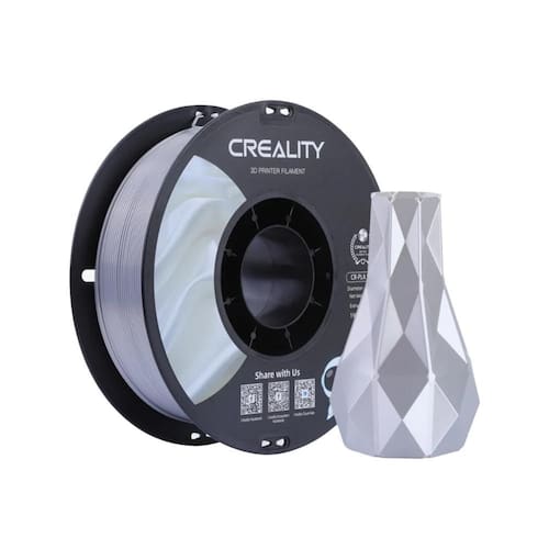 Filamento para impressora 3D CR SILK, ideal para quem busca qualidade de impressão e acabamento. A aparência de seda e alto brilho, visual diferente os modelos se destacam, superfície de impressão perolada e linda. Material ecológico e degradável. Enrolamento limpo e sem emaranhados. Verificado pela BFP (Better Filament Plan) compatível com impressoras Creality e com 99% das impressoras FDM do mercado.