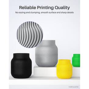 Eleve sua experiência de impressão 3D com um filamento PETG PRO e testemunhe ELEGOO diferença que isso faz. Com sua facilidade de impressão, precisão dimensional excepcional e estabilidade, boas propriedades mecânicas e resistência química e climática, explore sua ampla variedade de aplicações e compatibilidade e desbloqueie infinitas possibilidades para seus projetos de impressão 3D. Parâmetros Densidade: 1,27 g/cm³ Índice de derretimento: 8-10 (190C/2,16 kg) g/10 min Resistência à tração: = 37MPa Alongamento na ruptura: 15% Resistência à flexão: 67MPa Módulo de dobra: 1800 MPa Resistência ao impacto entalhada Izod: 5 kj/m² Temperatura de distorção térmica: 66°C (0,45MPa) Temperatura de impressão: 230~260°C (recomendado 240°C) Temperatura da plataforma de impressão: 75-90°C Velocidade de impressão: 40-100 mm/s - Impressões lisas e confiáveis: aborda efetivamente problemas comuns como exsudação e aglomeração associados ao PET regular, garantindo impressões mais suaves e confiáveis com detalhes nítidos - DURABILIDADE MELHORADA: PETG PRO oferece durabilidade e resistência superiores em comparação com PLA, tornando-o ideal para itens de longa duração. Oferece excelente resistência à água, UV e temperaturas, perfeito para aplicações externas como vasos de plantas, gaiolas de pássaros e peças automotivas - Consistente e menos emaranhado: precisão de diâmetro de +/- 0,02 mm, garantindo alimentação suave e consistente. O enrolamento mecânico completo e a inspeção manual rigorosa garantem que todos os filamentos PETG PRO sejam bem enrolados, reduz efetivamente os emaranhados e problemas de encaixe - Sem entupimento e sem bolhas: Seco completo antes de embalar e bem selado a vácuo protege os filamentos da umidade e poeira, sem entupimento e bolhas. Use o mais rápido possível após desembalar, seque completamente antes de usar novamente - IMPRESSÃO SUPERIOR: O filamento de impressora 3D PETG PRO tem maior adaptabilidade para impressoras e configurações de impressão. Você pode facilmente obter resultados de impressão ideais sem ajuste fino. Adequado para a maioria das impressoras FDM de 1,75 mm