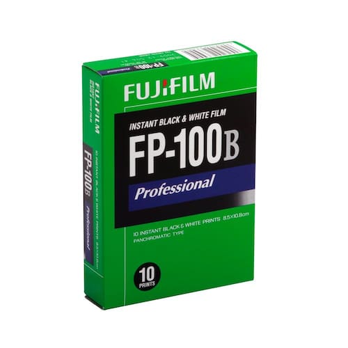 Filme profissional instantâneo em preto e branco FUJIFILM FP-100B de 3,25 x 4,25 polegadas — Tempo de desenvolvimento conveniente de 30 segundos.