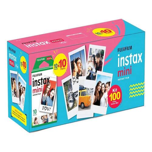 Tipo de Filme: Instantâneo Colorido Formato: Instax Mini Quantidade de Poses: 100 10 pacotes de 10 poses cada Cor da Borda: Branco Compatibilidade: Câmeras Fujifilm Instax Mini ex: Mini 9, Mini 11, Mini 40, Mini 90, etc.