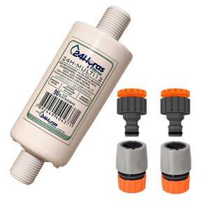 Filtro de água universal para mangueira de jardim com engates rápidos. Elimina cloro, gostos, cheiros, partículas sólidas e ajuda a elevar o pH. Eficiência da retenção de partículas: Classe III. Eficiência da redução de Cloro livre: Aprovado. Eficácia Anti-Microbiana 96%: Aprovado. Produto de acordo com a norma ABNT NBT 16098:2012.Bica móvel
