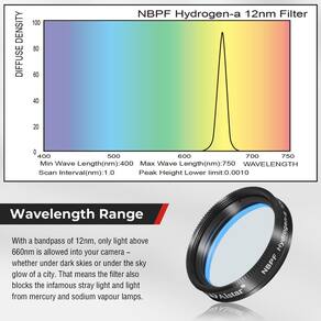 Filtro Alstar de 12 nm de banda estreita NBPF Hydrogen-a de 12 nm. A astrofotografia sob um céu noturno poluído pela luz pode ser difícil. A solução é um filtro H-alfa. O filtro de corte Alstar H-alpha funciona para filtrar grande parte dessa poluição luminosa. Este filtro conveniente permite apenas comprimentos de onda acima de 660 nm, o que significa que bloqueia uma grande parte da luz dispersa e também bloqueia a luz de lâmpadas artificiais de mercúrio e vapor de sódio. Estrelas jovens embutidas no vermelho brilhante de uma nebulosa - um filtro H-alfa é o especialista se você quiser capturar nebulosas de hidrogênio em toda a sua glória. O filtro de corte Alstar H-aplha aumenta o contraste entre o objeto e o céu, permitindo que você tire imagens de boa qualidade mesmo sob o céu urbano. A célula de filtro de metal se enrosca diretamente no cilindro de 3 cm da ocular do seu telescópio. Montado em uma caixa bem anodizada. - A célula de filtro de metal se enrosca diretamente no cilindro de 3,16 cm da ocular do seu telescópio; montado em uma caixa bem anodizada - O filtro Alstar H aplha cut off aumenta o contraste entre objeto e céu; permitindo que você tire imagens de boa qualidade mesmo sob o céu urbano - Estrelas jovens embutidas no vermelho brilhante de uma nebulosa: um filtro H alfa é o especialista se você quiser capturar nebulosas de hidrogênio em toda a sua glória - Com uma passagem de banda de 12 nm; apenas luz acima de 660 nm é permitida em sua câmera; seja sob o céu escuro ou sob o brilho do céu de uma cidade; isso significa que o filtro também bloqueia a infame luz dispersa e a luz das lâmpadas de vapor de mercúrio e sódio - Astrofotografia sob um céu noturno poluído pela luz pode ser difícil; a solução é um filtro H alfa; o filtro Alstar H alfa cortado funciona para filtrar uma grande parte dessa poluição luminosa