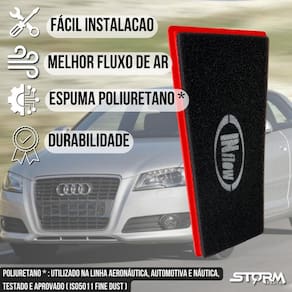 Filtro ar esportivo audi a3 2.0 tfsi turbo ano 2010 a 2013 - desenhado para melhorar a eficiência do veículo; - redução da emissão veicular; - não sofre com ação de umidade e chuva; - modelo urbano, podendo ser utilizado em ruas de terra com manutenção antecipada. Na utilização por longos períodos em estradas não pavimentadas, as condições de limpeza do filtro devem ser avaliadas a cada 5 mil km. Examinar o elemento filtrante a cada 5.000 km e periodicamente em condições severas de poeira. Quando em condições de utilização em áreas urbanas, geralmente 01 vez ao ano ou 15.000 km o que chegar primeiro , no mínimo.