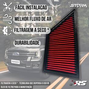 Filtro Ar Esportivo Ford Ranger 3.0 Turbo Diesel 2023 a 2025 Diferencial do Filtro de ar esportivo: A função do filtro de ar esportivo é semelhante a um filtro de ar padrão, porém o diferencial é o alto fluxo de ar, assim seu motor consegue admitir mais ar para a câmara de combustão. Isso faz com que o veículo consiga realizar uma melhor queima de combustível, consequentemente gera melhor eficiência energética, menor consumo de conbustível e aumento de potência, além é claro de sua vida útil muito superior de 100 mil KM . Compatível com : Ford Ranger 2.0 16v 170 cv 2023 a 2025 Ford Ranger 3.0 16v V6 250 cv 2023 a 2025 Medidas do Filtro: Acompanha: 01 Filtro de ar esportivo 01 Termo de 01 Manual de lavação 01 Chaveiro Premium 02 Adesivos Performance: O desenvolvimento do filtro esportivo é focado para fornecer um fluxo de ar mais elevado, garantindo maior passagem de ar para o motor. Ao utilizar o filtro esportivo RS, o seu veículo receberá a melhor tecnologia e performance Benefícios: Nosso grande diferencial é o equilíbrio entre o alto fluxo de ar com excelente filtragem, sendo um item indispensável para quem deseja maior rendimento do combustível Sustentável: : 100 Mil Km cobre: Defeitos dos materiais/fabricação não cobre: Uso impróprio, não realização das lavações recomendadas, modificações, reparo não autorizado, qualquer tipo de uso extremo, qualquer uso off-road, danos devido a transporte e armazenamento. Principais Perguntas: P. Necessita adaptação para instalar P. Acusa algum erro no painel do carro P. Qual a condição do produto R. Vendemos somente produtos novos e lacrados Obs: apesar de simples instalação orientamos que a instalação seja feita por um . Quem Somos: Somos a Storm Parts, trabalhamos com peças automotivas de alta qualidade e com , queremos que você e seu carro tenham a melhor experiência, por isso selecionamos cuidadosamente todos nossos produtos, os produtos da Storm Parts são a melhor opção para quem busca qualidade e confiança a um preço justo. Tenha tranquilidade de comprar com quem está disposto a oferecer o melhor atendimento, caso precise de ajuda antes ou após a compra, conte com a nossa equipe de atendimento para lhe ajudar. Marca: Não Informado Ean: 7894522901036