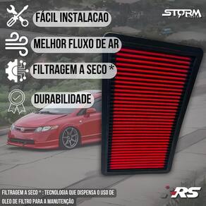 Filtro ar esportivo honda civic si motor 2.0 ano 2006 a 2011 A função do filtro de ar esportivo é semelhante a um filtro de ar padrão, porém o diferencial é o alto fluxo de ar, assim seu motor vai admitir mais ar para a câmara de combustão. Proporcionando uma melhor queima de combustível, gerando melhor eficiência energética menor consumo de combustível e aumento de potência além é claro de sua vida útil muito superior ao filtro tradicional de 100 mil km Durabilidade 10x maior que o filtro tradicional Seu motor trabalhando melhor devido ao maior fluxo de ar Compatível com: Honda civic si 2.0 16v 192cv 2006 até 2011 k20 Mais detalhes. - marca: rs filter - : 100 mil km - tecnologia de filtragem a seco não uso óleo para manutenção - material: 8 micro camadas de poliéster não usa papel tnt - lavável e reutilizável - retém completamente a entrada de poeira Acompanha: - 01 filtro de ar esportivo - 01 manual de lavação - 01 termo de - 01 chaveiro premium - 02 adesivos Performance: - o desenvolvimento do filtro esportivo é focado para fornecer um fluxo de ar mais elevado, garantindo maior passagem de ar para o motor. - ao utilizar o filtro esportivo rs, o seu veículo receberá a melhor tecnologia e performance Benefícios: - o grande diferencial é o equilíbrio entre o alto fluxo de ar com excelente filtragem, sendo um item indispensável para quem deseja maior rendimento do combustível Sustentável: Principais perguntas: P. Necessita adaptação para instalar P. Acusa algum erro no painel do carro P. Qual a condição do produto R. Vendemos somente produtos novos e lacrados Obs: apesar de simples instalação orientamos que a instalação seja feita por um profissional. Quem somos: - somos a storm parts, trabalhamos com peças automotivas de alta qualidade e com , queremos que você e seu carro tenham a melhor experiência, por isso selecionamos cuidadosamente todos nossos produtos, os produtos da storm parts são a melhor opção para quem busca qualidade e confiança a um preço justo. - tenha tranquilidade de comprar com quem está disposto a oferecer o melhor atendimento, caso precise de ajuda antes ou após a compra, conte com a nossa equipe de atendimento para lhe ajudar. Marca: Não Informado