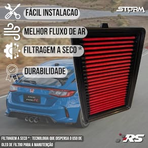 Filtro ar esportivo honda civic type r 2.0 turbo 2022 a 2026 A função do filtro de ar esportivo é semelhante a um filtro de ar padrão, porém o diferencial é o alto fluxo de ar, assim seu motor vai admitir mais ar para a câmara de combustão. Proporcionando uma melhor queima de combustível, consequentemente gerando melhor eficiência energética menor consumo de combustível e aumento de potência além é claro de sua vida útil muito superior ao filtro tradicional de 100 mil km Durabilidade 10x maior que o filtro tradicional Seu motor trabalhando melhor devido ao maior fluxo de ar Compatível com: Honda civic type r 2.0 turbo 2022 a 2026 Mais detalhes. - marca: rs filter - : 100 mil km - tecnologia de filtragem a seco não uso óleo para manutenção - material: 8 micro camadas de poliéster não usa papel tnt - lavável e reutilizável - retém completamente a entrada de poeira Acompanha: - 01 filtro de ar esportivo - 01 manual de lavação - 01 termo de - 01 chaveiro premium - 02 adesivos Performance: - o desenvolvimento do filtro esportivo é focado para fornecer um fluxo de ar mais elevado, garantindo maior passagem de ar para o motor. - ao utilizar o filtro esportivo rs, o seu veículo receberá a melhor tecnologia e performance Benefícios: - o grande diferencial é o equilíbrio entre o alto fluxo de ar com excelente filtragem, sendo um item indispensável para quem deseja maior rendimento do combustível Sustentável: Principais perguntas: P. Necessita adaptação para instalar P. Acusa algum erro no painel do carro P. Qual a condição do produto R. Vendemos somente produtos novos e lacrados Obs: apesar de simples instalação orientamos que a instalação seja feita por um . Quem somos: - somos a storm parts, trabalhamos com peças automotivas de alta qualidade e com , queremos que você e seu carro tenham a melhor experiência, por isso selecionamos cuidadosamente todos nossos produtos, os produtos da storm parts são a melhor opção para quem busca qualidade e confiança a um preço justo. - tenha tranquilidade de comprar com quem está disposto a oferecer o melhor atendimento, caso precise de ajuda antes ou após a compra, conte com a nossa equipe de atendimento para lhe ajudar. Marca: Não Informado