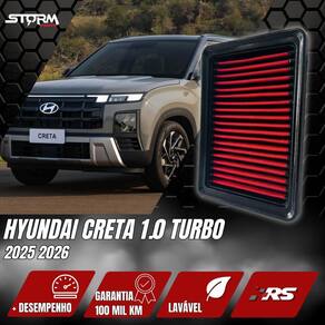Diferencial do Filtro de ar esportivo: A função do filtro de ar esportivo é semelhante a um filtro de ar padrão, porém o diferencial é o alto fluxo de ar, assim seu motor consegue admitir mais ar para a câmara de combustão. Isso faz com que o veículo consiga realizar uma melhor queima de combustível, consequentemente gera melhor eficiência energética, menor consumo de conbustível e aumento de potência, além é claro de sua vida útil muito superior de 100 mil KM . Compatível com : Hyundai Creta 1.0 Turbo 2025 Hyundai Creta 1.6 Turbo 2025 Medidas do Filtro: Acompanha: 01 Filtro de ar esportivo 01 Termo de 01 Manual de lavação 01 Chaveiro Premium 02 Adesivos Performance: O desenvolvimento do filtro esportivo é focado para fornecer um fluxo de ar mais elevado, garantindo maior passagem de ar para o motor. Ao utilizar o filtro esportivo RS, o seu veículo receberá a melhor tecnologia e performance Benefícios: Nosso grande diferencial é o equilíbrio entre o alto fluxo de ar com excelente filtragem, sendo um item indispensável para quem deseja maior rendimento do combustível Sustentável: : 100 Mil Km cobre: Defeitos dos materiais/fabricação não cobre: Uso impróprio, não realização das lavações recomendadas, modificações, reparo não autorizado, qualquer tipo de uso extremo, qualquer uso off-road, danos devido a transporte e armazenamento. Principais Perguntas: P. Necessita adaptação para instalar P. Acusa algum erro no painel do carro P. Qual a condição do produto R. Vendemos somente produtos novos e lacrados Obs: apesar de simples instalação orientamos que a instalação seja feita por um . Quem Somos: Somos a Storm Parts, trabalhamos com peças automotivas de alta qualidade e com , queremos que você e seu carro tenham a melhor experiência, por isso selecionamos cuidadosamente todos nossos produtos, os produtos da Storm Parts são a melhor opção para quem busca qualidade e confiança a um preço justo. Tenha tranquilidade de comprar com quem está disposto a oferecer o melhor atendimento, caso precise de ajuda antes ou após a compra, conte com a nossa equipe de atendimento para lhe ajudar.