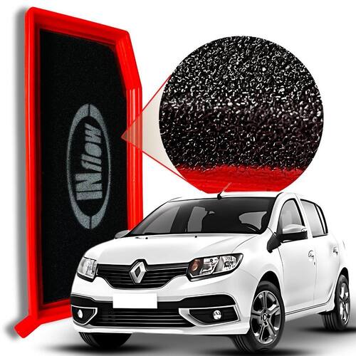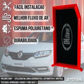 Filtro ar esportivo inflow renault sandero 1.6 2016 a 2022 Características: - desenhado para melhorar a eficiência do veículo; - não descartável lavável e 100% reciclável; - vida útil de 2 anos ou 60.000km; - redução da emissão veicular; - redução na quantidade de trocas de filtro de ar convencional de papel ecologicamente correto ; - espuma poliuretano performance de filtro ar esportivo ; - não sofre com ação de umidade e chuva; - óleo utilizado: óleo mineral vaselina líquida neutra - modelo urbano, podendo ser utilizado em ruas de terra com manutenção antecipada. Na utilização por longos períodos em estradas não pavimentadas, as condições de limpeza do filtro devem ser avaliadas a cada 5 mil km.