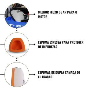 Ideal para a prática da trilha, motocross, enduro, velocross e outras modalidades off-road, este filtro de ar é leve e durável, mantendo o equilíbrio ideal entre proteção e fluxo de ar.