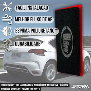 Filtro ar inflow citroen ds4 motor 1.6 thp turbo 2012 a 2016 Características: - desenhado para melhorar a eficiência do veículo; - não descartável lavável e 100% reciclável; - vida útil de 2 anos ou 60.000km; - redução da emissão veicular; - redução na quantidade de trocas de filtro de ar convencional de papel ecologicamente correto ; - espuma poliuretano performance de filtro ar esportivo ; - não sofre com ação de umidade e chuva; - óleo utilizado: óleo mineral vaselina líquida neutra - modelo urbano, podendo ser utilizado em ruas de terra com manutenção antecipada. Na utilização por longos períodos em estradas não pavimentadas, as condições de limpeza do filtro devem ser avaliadas a cada 5 mil km. Compatível com: Citroen ds4 motor thp 1.6 turbo Itens inclusos - 01 filtro de ar esportivo - 01 manual - 01 adesivo decal inflow - 01 adesivo caixa de ar - 01 termo de Sobre o filtro: Melhore a eficiência do seu veículo com os filtros inflow. Feito especialmente de poliuretano, um material filtrante já consagrado em mercados como o europeu, americano e asiático, os filtros inflow aperfeiçoam a entrada de ar no motor, proporcionando uma melhor combustão e consequentemente diminuindo o consumo de combustível. Pelo histórico de todos os testes realizados em outros veículos, os resultados sempre são muito parecidos, ou seja: filtro novo inflow x filtro novo papel = ganho de 2 a 3% em potência. Com o passar do tempo, os demais filtros começam a ficar restritivos, aumentando significativamente essa %, podendo chegar a 10% essa restrição não ocorre com o inflow em função da característica das células, em formato de dodecaedro, que retém a poeira que fica grudada no óleo que é aplicado no filtro, mantendo por um tempo muito maior, o funcionamento do motor em sua plenitude de potência. Quando fazer a manutenção Depende do uso. Examinar o elemento filtrante a cada 5.000 km e periodicamente em condições severas de poeira. Quando em condições de utilização em áreas urbanas, geralmente 01 vez ao ano ou 15.000 km o que chegar primeiro , no mínimo. Principais perguntas: P. Necessita adaptação para instalar P. Acusa algum erro no painel do carro P. Qual a condição do produto R. Vendemos somente produtos novos e lacrados P. Acompanha oleo de manutenção R. Filtro já vem com oleo aplicado, porem não acompanha oleo adiconal para as futuras manutenções oleo adquirido a parte Obs: apesar de simples instalação orientamos que a instalação seja feita por um profissional.