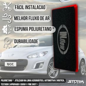 Filtro ar inflow peugeot 308 motor 1.6 thp turbo 2012 a 2015