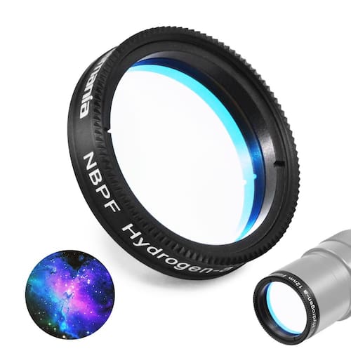 Astromania Filtro de hidrogênio NBPF de banda estreita de 12 nm de 3,17 cm. A astrofotografia sob um céu noturno poluído pela luz pode ser difícil. A solução é um filtro H-alfa. O filtro de corte H-alfa Astromania funciona para filtrar grande parte dessa poluição luminosa. Este filtro conveniente permite apenas a passagem de largura de banda de 12 nm de luz centrada em um comprimento de onda de 656 nm, o que significa que bloqueia uma grande parte da luz dispersa e também bloqueia a luz de lâmpadas artificiais de mercúrio e vapor de sódio. Estrelas jovens embutidas no vermelho brilhante de uma nebulosa - um filtro H-alfa é o especialista se você quiser capturar nebulosas de hidrogênio em toda a sua glória. O filtro de corte H-aplha Astromania aumenta o contraste entre o objeto e o céu, permitindo que você tire imagens de boa qualidade mesmo sob o céu urbano. A célula de filtro de metal se enrosca diretamente no cilindro de 3 cm da ocular do seu telescópio. Montado em uma caixa bem anodizada. - O filtro de corte H-aplha Astromania melhora o contraste entre o objeto e o céu; permitindo que você tire imagens de boa qualidade mesmo sob o céu urbano - Estrelas jovens embutidas no vermelho brilhante de uma nebulosa - um filtro H-alfa é o especialista se você quiser capturar nebulosas de hidrogênio em toda a sua glória - Permite a passagem de largura de banda de 12 nm de luz centrada em um comprimento de onda de 656 nm; transmissão de 90% na linha H-alfa 656 nm; isso significa que o filtro também bloqueia a infame luz dispersa e a luz das lâmpadas de vapor de mercúrio e sódio - A astrofotografia sob um céu noturno poluído pela luz pode ser difícil; a solução é um filtro H-alfa; o filtro de corte H-alfa Astromania funciona para filtrar grande parte dessa poluição luminosa - A célula de filtro de metal se enrosca diretamente no cilindro de 3,16 cm da ocular do seu telescópio; montado em uma caixa bem anodizada
