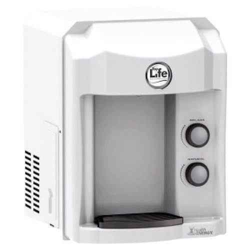 Filtro de Água Gelada e Alcalina Ionizada HE 220v Branco Top Life Características e benefícios Purificador Água Alcalina e Ionizada HE Top Life: 1. Redox Negativo: Água antioxidante evita formação de radicais livres, proporciona mais saúde às nossas células e age como rejuvenescedor celular 2. Aumenta Condutividade: Todo comando enviado do cérebro para o corpo é transmitido por via aquosa e, quanto maior a condutividade do meio, mais rápido a informação chega ao destino 3. Baixa Tensão Supercial: Pela ionização, transforma-se a molécula da água em ângulo hexagonal unindo 6 moléculas de H2O . A água comum tem de 11 a 14 moléculas de H2O por Cluster e as moléculas ficam no ângulo hexagonal, com formação de apenas 6 moléculas por Cluster, bem mais leve e o corpo absorve mais rápido O Purificador HE também aumenta a hidratação do corpo, ajuda na eliminação de toxinas, favorece a digestão, auxilia na redução da hiperacidez gástrica e ajuda a combater a retenção de líquidos. Elemento Filtrante 1 - Filtragem - Polipropileno de 25 micra: A água atravessa o elemento filtrante de 25 micra, reduzindo as partículas em suspensão barro, areia, lodo, ferrugem, entre outros . 2 - Desinfecção - Zeolife: Material natural com efeito bactericida e bacteriostático conforme NBR 14908 , que remove metais pesados Cinza, níquel, cromo, manganês, zinco, mercúrio e cobre , amônia, turbidez, cor, sabor e preserva sais minerais. 3 - Purificação - Carvão ativado: A água atravessa os poros do carvão ativado, da casca de coco de Babaçu e dá sequência na redução do cloro e de outras substâncias químicas e orgânicas. 4 - Carvão ativado impregnado com prata : Continuidade à retenção do cloro livre e compostos orgânicos, iniciando a inibição e redução de bactérias pela propriedade bacteriostática da prata, reduzindo eventual contaminação da água por bactérias como Escherichia coli, Coliformes Fecais Pseudomonas aeruginosas e Microcystis aeruginosa. 5 - Alcalinização: A água entra com pH ácido ou neutro 6-7 e as moléculas são desagregadas para iniciarem o processo de organização em clusters células menores que ajudarão o organismo a eliminar as toxinas do corpo. Depois, as moléculas da água já estão agregadas em pequenos grupos facilitando a absorção e hidratação do organismo. Na última fase, o pH é elevado entre 8,5 a 9,5 e ocorre o processo de anti-oxidação da água. 6 - Filtragem - Manta e tela texturizada: Término do processo de purificação e filtragem. A água atravessa a manta e a tela texturizada de 150 micra, promovendo mais uma filtragem, fornecendo água límpida, transparente, sem gosto e sem cheiro. Especificações Técnicas Medidas: A 39cm, L 30cm, C 42cm, Peso 12,5 kg, Gás refrigerante R134a ecológico , Temperatura de trabalho 5C a 32C, Tensão 220v não é bivolt 60Hz, Potência: 100W, Vazão Máxima 0,75 L/min, 45 L/H, Vida útil refil: 3000 litros, Produto estinado à água prétratada de acordo com a portaria 2914 MS. Homologação Anatel: 020391912108