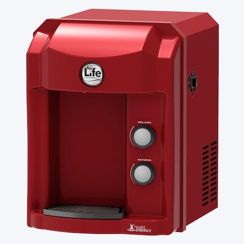Filtro de Água Gelada e Alcalina Ionizada HE 220v Vermelho Top Life Características e benefícios Purificador Água Alcalina e Ionizada HE Top Life: 1. Redox Negativo: Água antioxidante evita formação de radicais livres, proporciona mais saúde às nossas células e age como rejuvenescedor celular 2. Aumenta Condutividade: Todo comando enviado do cérebro para o corpo é transmitido por via aquosa e, quanto maior a condutividade do meio, mais rápido a informação chega ao destino 3. Baixa Tensão Supercial: Pela ionização, transforma-se a molécula da água em ângulo hexagonal unindo 6 moléculas de H2O . A água comum tem de 11 a 14 moléculas de H2O por Cluster e as moléculas ficam no ângulo hexagonal, com formação de apenas 6 moléculas por Cluster, bem mais leve e o corpo absorve mais rápido O Purificador HE também aumenta a hidratação do corpo, ajuda na eliminação de toxinas, favorece a digestão, auxilia na redução da hiperacidez gástrica e ajuda a combater a retenção de líquidos. Elemento Filtrante 1 - Filtragem - Polipropileno de 25 micra: A água atravessa o elemento filtrante de 25 micra, reduzindo as partículas em suspensão barro, areia, lodo, ferrugem, entre outros . 2 - Desinfecção - Zeolife: Material natural com efeito bactericida e bacteriostático conforme NBR 14908 , que remove metais pesados Cinza, níquel, cromo, manganês, zinco, mercúrio e cobre , amônia, turbidez, cor, sabor e preserva sais minerais. 3 - Purificação - Carvão ativado: A água atravessa os poros do carvão ativado, da casca de coco de Babaçu e dá sequência na redução do cloro e de outras substâncias químicas e orgânicas. 4 - Carvão ativado impregnado com prata : Continuidade à retenção do cloro livre e compostos orgânicos, iniciando a inibição e redução de bactérias pela propriedade bacteriostática da prata, reduzindo eventual contaminação da água por bactérias como Escherichia coli, Coliformes Fecais Pseudomonas aeruginosas e Microcystis aeruginosa. 5 - Alcalinização: A água entra com pH ácido ou neutro 6-7 e as moléculas são desagregadas para iniciarem o processo de organização em clusters células menores que ajudarão o organismo a eliminar as toxinas do corpo. Depois, as moléculas da água já estão agregadas em pequenos grupos facilitando a absorção e hidratação do organismo. Na última fase, o pH é elevado entre 8,5 a 9,5 e ocorre o processo de anti-oxidação da água. 6 - Filtragem - Manta e tela texturizada: Término do processo de purificação e filtragem. A água atravessa a manta e a tela texturizada de 150 micra, promovendo mais uma filtragem, fornecendo água límpida, transparente, sem gosto e sem cheiro. Especificações Técnicas Medidas: A 39cm, L 30cm, C 42cm, Peso 12,5 kg, Gás refrigerante R134a ecológico , Temperatura de trabalho 5C a 32C, Tensão 127v ou 220v não é bivolt 60Hz, Potência: 100W, Vazão Máxima 0,75 L/min, 45 L/H, Vida útil refil: 3000 litros, Produto estinado à água prétratada de acordo com a portaria 2914 MS. Homologação Anatel: 020391912108
