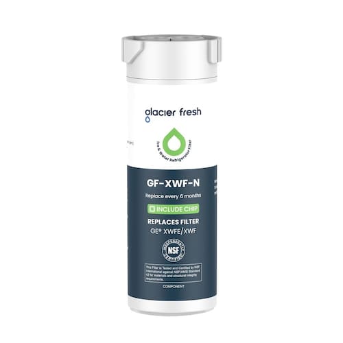 filtro de água - GLACIER FRESH Substituição para filtro de água de geladeira XWFE (com CHIP) Declaração: Testado e verificado por testes de laboratório independentes, pode remover produtos químicos e contaminantes da sua água potável, resultando em água de sabor limpo e cheiro limpo. - NSF/ANSI 42: Testado por nosso laboratório independente, este produto reduz efetivamente 97,9% de cloro, odores, grafite e sabores desagradáveis na água. - Compatível com GE XWFE, GE XWF, GBE21, GDE21, GDE25, GFE24, GFE26, GNE21, GNE25, GNE27, GNE27, GWE19, GYE18, QNE27, GSE25, GSS23, GSS25, GZS22, PSE25, CZS22. - Oferece um ajuste preciso e à prova de vazamento: a substituição do filtro de água GF-XWF-N para XWFE é compatível com refrigeradores GE lado a lado e oferece uma instalação sem ferramentas. É um excelente substituto para o filtro GE XWFE. (A GLACIER FRESH é uma marca independente, e este produto não é fabricado pela GE.) - Vida útil do filtro: Substitui o filtro a cada 6 meses ou 200 galões, o que ocorrer primeiro.